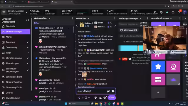 04:14:04Der Streamer äußert sich zum Wert seines Accounts und betont, dass Account-Verkäufe verboten sind. Er erklärt, dass er etwa 6.500 Euro in den Account investiert hat und dass dieser aufgrund seiner Erfolge und seines hohen Levels einen gewissen Wert besitzt. Im Spiel selbst gibt er Anweisungen und koordiniert Strategien mit seinem Team. Er bespricht, wo Smokes platziert werden sollen, welche Positionen eingenommen werden müssen und wie Drohnen effektiv eingesetzt werden können. Der Streamer analysiert die Spielzüge seiner Gegner und passt seine Taktik entsprechend an. Er lobt gute Aktionen seiner Mitspieler und gibt konstruktive Kritik, wenn Fehler gemacht werden. Die Kommunikation und Koordination im Team stehen im Vordergrund, um gemeinsam erfolgreich zu sein. Der Streamer reagiert auf Fragen im Chat und erklärt seine Entscheidungen, was die Transparenz und Nähe zur Community unterstreicht.