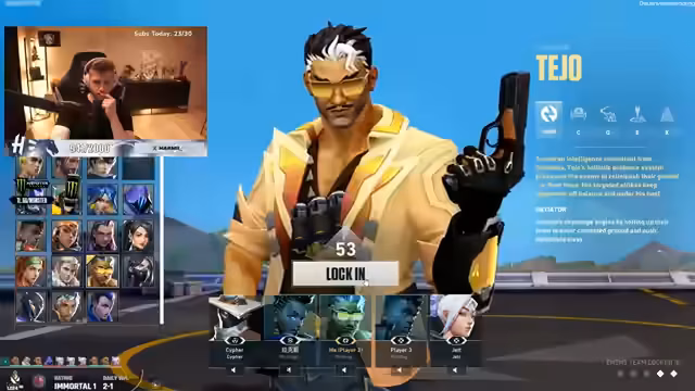 00:00:06Zu Beginn des Streams wird der neue Ranked-Grind gestartet. Es wird die Funktionsweise der Soft- und Hard-Resets erklärt, bei der je nach Rang und Abschluss der vorherigen Season der Startpunkt für die neue Saison variiert. Der Streamer stellt zudem seine aktuelle Lineup für die neue Season mit Sova als 1B-Main und Phoenix als B-Main vor und spielt seine ersten Runden auf der Map Sunset, um den Grind zu beginnen.