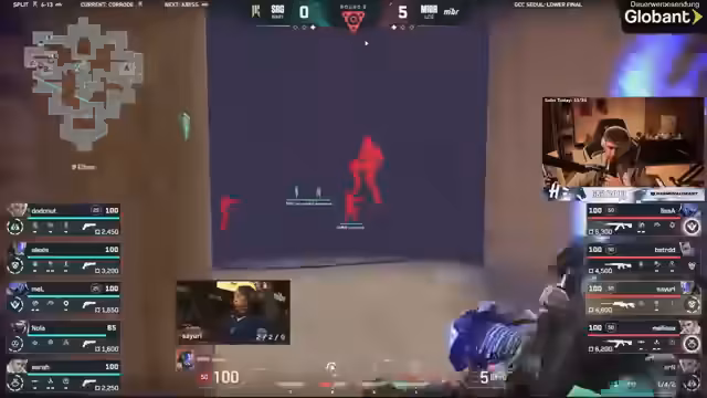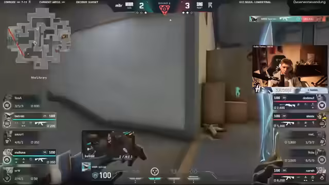 04:51:24Das VALORANT-Spiel erreicht eine kritische Phase, in der MIBR versucht, ein Comeback zu starten und Shopify Rebellion herauszufordern. Die Geschichte der Teams wird beleuchtet: MIBR, die bei ihrer ersten Teilnahme an der GCC sofort erfolgreich waren und im Grand Final gegen Shopify Rebellion standen, und Shopify Rebellion, die als Back-to-Back-Champions ihren Titel verteidigen wollen. Die Emotionen kochen hoch, als MIBR sechs Runden in Folge gewinnt und die Spannung im Spiel unerträglich wird. Die Zuschauer werden Zeugen von entscheidenden Spielzügen, wie einer Flash von SRN, die überlebt wird, und einer verpatzten Ulti von Asta. Die Kommentatoren diskutieren die Strategien der Teams, einschließlich der Entscheidung von MIBR, Geld für eine AWP in der nächsten Runde zu sparen. Die Spielerleistungen, insbesondere von Sarah und Dodo, werden hervorgehoben, während Shopify Rebellion versucht, ihre Dominanz zu behaupten. Das Spiel ist geprägt von knappen Entscheidungen und intensiven Kämpfen um jeden Punkt, wobei MIBR weiterhin Druck ausübt und Shopify Rebellion herausfordert.