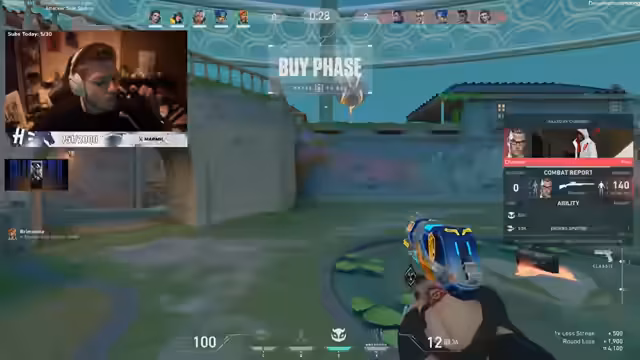 00:00:54Der Streamer startet den Stream und begrüßt mehrere Zuschauer, darunter Madwink, Himmelsrichtung und Kumo. Er diskutiert den Deathmatch-Modus in Valorant und äußert sich zu Chancen für einen guten Tag bei Siegen. Dabei werden strategische Aspekte wie Map-Kontrolle und Agentenwahl (Chamber, Phoenix) thematisiert. Die Unterhaltung schweift zu Musik ab, wobei traurige Tracks als atmosphärisch beschrieben werden, besonders beim League of Legends spielen. Es folgen detaillierte Gameplay-Beschreibungen mit Kills, Positionierungen und Rundenverläufen, während weitere Zuschauer wie Tim, Link und Palas begrüßt werden.
