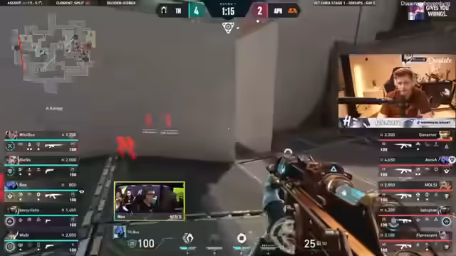 00:21:20Split wird als klassische Attacker-Map für Profis angesehen. Es wird eine Diskussion über mögliche Team-Kompositionen geführt, wie die doppelten Controller bei Apex. Heretics setzt auf ISO und Raze. Der Streamer betont, wie sehr Minibus auf Jet spielt und wundert sich über die strategischen Entscheidungen der Teams. Wovas Rolle wird als entscheidend für den Spielverlauf beschrieben.