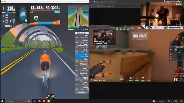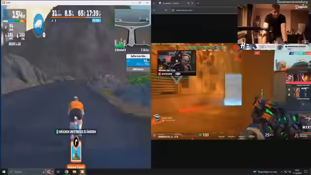 06:02:23Der Streamer vergleicht das Radfahren auf einem Heimtrainer mit dem Fahren im Freien. Er stellt fest, dass das Fahren im Freien angenehmer ist, da der Fahrtwind einen kühlt und man weniger schwitzt. Er beschreibt die Anstrengungen einer 18 Kilometer indoor-Session, die ihm körperlich mehr ausmacht, als längere Distanzen draußen. Er diskutiert auch den Einfluss der körperlichen Verfassung auf seine spielerische Leistung, insbesondere nach intensivem Sport.