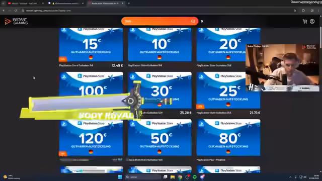 04:52:45Es wird auf den YouTube-Kanal hingewiesen und darum gebeten, diesen zu abonnieren, um das Ziel von 100.000 Abonnenten zu erreichen. Der Streamer verweist auf Instant Gaming als Partner, wo Spiele und Guthabenkarten mit Rabatt erhältlich sind, insbesondere Valorant Points. Es wird darauf hingewiesen, dass die 80 Euro Valorant Points aufgrund des Rabatts besonders beliebt sind. Durch die Nutzung des Links zum Shop wird der Streamer unterstützt. Auch PSN-Guthabenkarten und andere Spiele können erworben werden. Abschließend bedankt sich der Streamer für die Teilnahme am Stream und kündigt Pizza und eine Story auf Instagram an. Der Stream wird beendet.