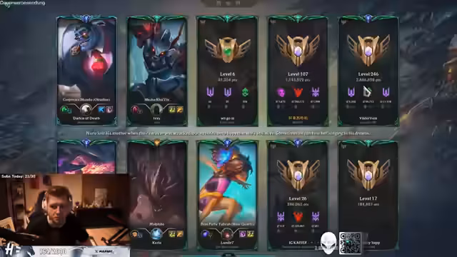 04:51:10Nach 10 Valorant-Spielen mit nur einem Sieg wechselt der Streamer frustriert zu League of Legends. Er erklärt seinen Wechsel mit den Worten 'Wenn du das Schicksal hast, du möchtest, dann möchtest du das Schicksal hast du' und kündigt an, bei Valorant aufzuhören. Stattdessen startet er League of Legends, während er seine Losing Streak von 1-10 in Valorant beklagt und die 'gesundheitsschädlichen' Aspekte des Spielverhaltens anspricht.