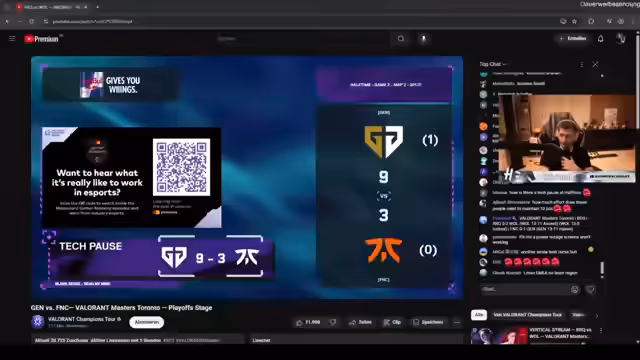 02:59:43Fnatic zeigt eine überragende Leistung auf der Map Bind. Ihr Spielstil ist aggressiv und diszipliniert, was sich in perfekten Runden wie der Runde 12 zeigt. Spieler wie KAYO und Cron sind extremstark im Aim und in der Positionierung. Die Taktik, die Gen.G mit Viper und Sova zwingt, wird als sehr effektiv beschrieben, und Fnatics Fähigkeit, utility wie Smokes strategisch einzusetzen, entscheidet das Spiel.