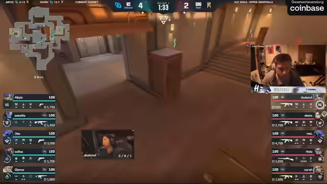 04:36:57Das Spiel geht in die dritte Map, Sunset. Beide Teams spielen ähnliche Zusammensetzungen, was zu der Frage führt, ob jemand seine Taktik ändern wird. Es wird die ungewöhnliche, aber populäre Wahl von Sage statt Viper für KC im B-Main angesprochen. Kommentatoren analysieren die Kombination aus Flash-Start und Glanz, die Noya das Leben schwer macht, und betonen, dass die Chamber einen ständigen Babysitter benötigt. Shopify versucht, aggressiv mit einer Fünfer-Gruppe zu starten.