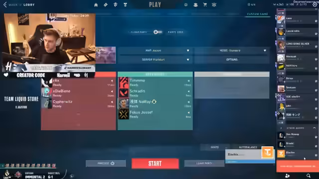 06:35:40Der Streamer und sein Team planen ihre Teilnahme am Eli-Cup Turnier, das am Samstag und Sonntag stattfindet. Sie diskutieren über die Besetzung der Rolle des neuen Spielers Schradin, wobei der Streamer darauf besteht, dass dieser Raze spielen soll. Sie planen auch, vorher noch ein Deathmatch-Spiel zu machen, um die Trefferquote zu verbessern. Der Streamer ermutigt sein Team, sich auf das Turnier vorzubereiten, während er gleichzeitig versucht, neue Mitspieler für das Turnier zu finden.