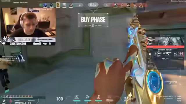 00:18:54Während des Spiels werden verschiedene Strategien und Entscheidungen diskutiert. Der Streamer kritisiert den neuen Bundle und äußert, dass er vom Aussehen und Sound her nicht seinen Geschmack trifft. Es geht um das Spielen von Waylay und die Taktiken im Spiel, wie etwa das Stunnen von Gegnern mit Jett und das Nutzen von Flash. Der Streamer erwähnt, dass Waylay nicht in Turnieren erlaubt ist und Pros stattdessen Sage und Ghost spielen müssen.