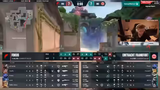 02:23:03Fokus hat verdient gewonnen, trotz eines kurzen Aufbäumens von Eintracht Frankfurt. Besonders in der ersten Halbzeit zeigten sie perfekte Retakes und trafen die richtigen Entscheidungen in jeder Situation. Alorante wirkt zufrieden und erleichtert. Der Knackpunkt war, dass Frankfurt am Anfang nicht ins Spiel kam. Nach einem Timeout gab es zwar eine gewonnene Ecoplay, aber auch da kam kein richtiges Momentum auf. Frankfurt muss zurück zum Drawing Board und überlegen, ob die Mapwahl gegen Fokus richtig war oder ob sie die Map nochmal gegen Fokus spielen wollen. Es wird eine kurze Pause angekündigt, da der Kampf um Berlin noch nicht beendet ist. Wer die nächste Map gewinnt, kommt nach Berlin, der Verlierer hat am Montag noch eine Chance.