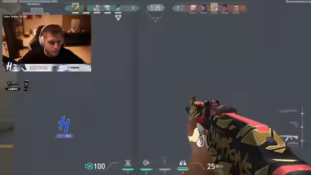 00:06:00Der Stream beginnt mit einer Reihe von Begrüßungen für die Zuschauer wie Herak, Erik und Arnie. Kommentiert wird ein Spielverlauf mit einem Ghost Agent, der gute Ausrüstung wie Brimstone Boots besitzt. Es werden Fragen zum Wechsel zwischen Vandal und anderen Waffen gestellt, und die Rounde wird knapp verloren. Der Streamer diskutiert mit dem Chat über die Wirksamkeit von Smokes und Flashes und wie man diese strategisch einsetzen kann. Eine Waffe wird für ihren Sound gelobt, während ihr Aussehen als mittelmäßig betrachtet wird.