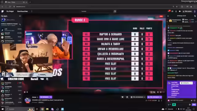 08:21:53Die Ergebnisse der vorherigen Runde werden besprochen, wobei Reapers als konsistentes und erfolgreiches Team hervorgehoben wird. Krimbo belegt den zweiten und siebten Platz, während das Duo des Streamers den fünften und zehnten Platz erreicht. Schradin, Jello und Kati sind ebenfalls unter den Top-Verdienern. Es wird festgestellt, dass Jello trotz weniger Kills ein sehr konstantes Duo bildet. Die Vorbereitungen für die nächste Runde beginnen, aber es gibt Probleme mit der Teilnahme von Amesie, da ein Key fehlt. Der Streamer äußert Unzufriedenheit mit der eigenen Leistung, ist aber insgesamt zufrieden. Technische Schwierigkeiten mit Amazon Internet werden erwähnt, was zu Frustration führt. Der Chat von Hami wird vorübergehend genutzt, während der Streamer plant, sich beim Internetanbieter zu beschweren. Es wird überlegt, wie viel für eine Special-Round gezahlt werden müsste, wobei 2.000 Euro als möglicher Betrag genannt werden, um Reason gegen alle anderen spielen zu lassen.