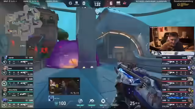 Im VALORANT GC Championship-Match demonstriert Ninetales eine beeindruckende Fähigkeit, Ziptos aggressive Taktiken zu neutralisieren. Während Zipto versucht, Druck aufzubauen, nutzt Ninetales präzise Reads und Treffsicherheit, um 1-gegen-1-Situationen zu dominieren. Diese Strategie führt dazu, dass Ninetales das Momentum dreht und sich nach anfänglichen Schwierigkeiten deutlich absetzen kann, was Zipto zwingt, ihre Angriffsstrategien zu überdenken.