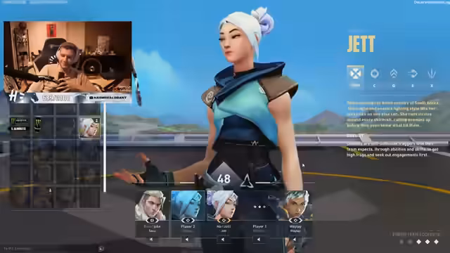 00:14:22Hauptfokus des Streams ist das Spielen von Ranked-Matches in Valorant. Der Streamer hat Probleme mit bestimmten Agenten wie Joru, dessen Fähigkeiten ihm im Ranked als zu stark erscheinen. Er kritisiert insbesondere den Klon und die Flash-Fähigkeit, die den Bildschirm für mehrere Sekunden blenden und so den Spielverlauf negativ beeinflussen. Des Weiteren werden verschiedene Strategien für den aktuellen Rang angesprochen und wie der Streamer mit den Herausforderungen in der Elo umgeht.
