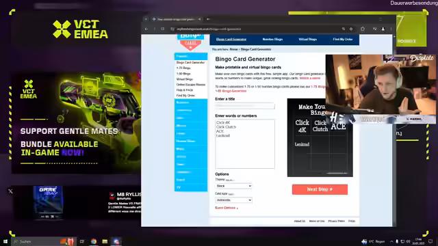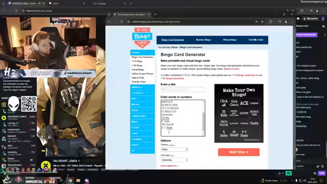Stream-Restart und Bingo-Vorbereitungen für VCT-Spiel