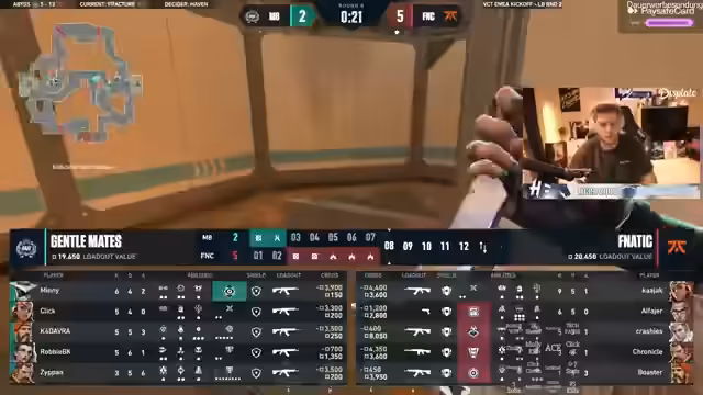 04:38:30Ein riskantes 'Gamble'-Play zahlt sich aus und führt zur Tilt des Gegners. Die geilen Kabel und das schöne Studio werden kommentiert. Es wird diskutiert, ob es schlauer gewesen wäre, beim Planten mit dem Gesicht zur Wand zu gucken, um den Radius zu verringern. Es wird analysiert, wie Crashies gute Entscheidungen trifft und Alpha einen Reveal von Onside zerstört, was zum Runden-Gewinn führt. Alpha wird für seine Fähigkeiten gelobt, insbesondere seine Race im Kopf bei Fracture. Es wird die Frage aufgeworfen, warum man einen TP platziert, wenn man hört, dass der Gegner einen Chamber platziert. Es folgt eine Spekulation über ein Gamble-Peak mit der Operator. Es wird diskutiert, ob Alpha wieder für Fnatic spielt und ob Leo aufgrund gesundheitlicher Probleme noch nicht spielt. Es wird ein 'Clusterfakt' erwartet, mit Molotovs, Stuns, Nades, Reveals und Ults in jeder Ecke. Ein Tilter-Play wird beschrieben, bei dem der Gegner in die Irre geführt wird. Die Runde wird als gewonnen für Finetic vorhergesagt.