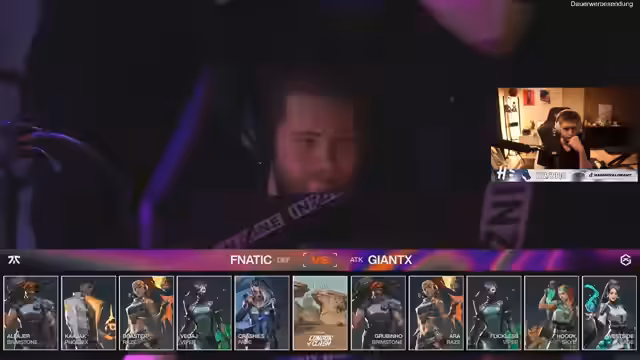 07:36:28Die zweite Map Haven zwischen Fnatic und Giant X beginnt. Der Streamer bemerkt, dass Fnatic das Spiel im Griff hat und Giant X überfordert wirkt. Gleichzeitig beschwert er sich über die Qualität des Streams, insbesondere die Verzögerungen im Sound und die Probleme mit dem Overlay. Es wird deutlich, dass es sich um ein Showmatch handelt, dessen Ausgang für die Zukunft der Teams weniger bedeutend ist.