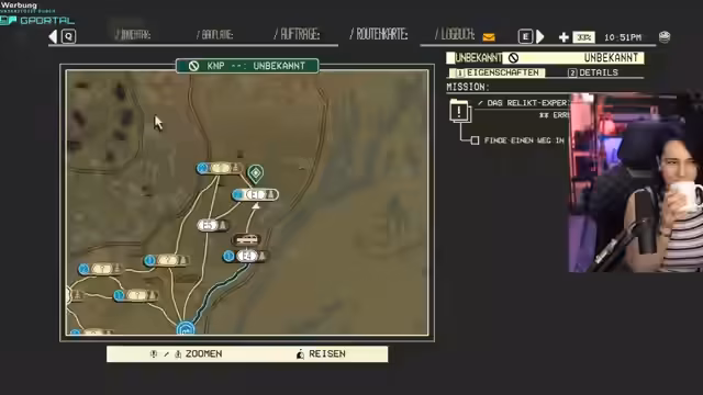 05:02:55Die Fahrt führt auf eine Straße, an der der Streamer Ressourcen wie Benzin und Tankstellen findet. Während der Fahrt durch einen dunklen, unwegsamen Bereich mit vielen Hindernissen und Puppenfiguren, sammelt er Materialien wie Stahlblech. Ein gelber Marker deutet darauf hin, dass genügend Ressourcen für das Portal aktivieren gesammelt wurden. Die Fahrt zur Brücke und die Anomalie steht nun im Fokus.