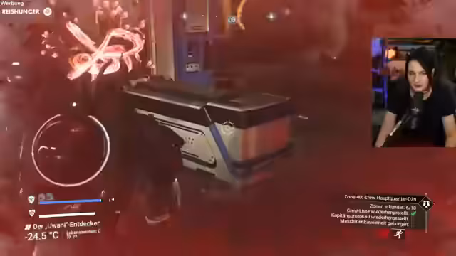 07:14:10Die Streamerin teilt persönliche Erfahrungen über ihre Eltern, die sie als Kind durch eine rosarote Brille sahen, obwohl sie selbst zugibt, ein nerviges Kind gewesen zu sein. Sie reflektiert über die Kochkünste ihrer Eltern und wie sie als Erwachsene oft feststellt, dass es an Gewürzen und Mühe mangelte. Dies führt zu einer allgemeinen Diskussion über die Wahrnehmung von Eltern und die Entwicklung eigener Kochfähigkeiten. Im Spiel gerät die Streamerin in eine frustrierende Situation, als sie mehrfach von einem vermeintlichen NPC angeschossen wird, der sich als ein Mitspieler entpuppt. Die Verwirrung und der Ärger über die Situation werden humorvoll kommentiert, während die Streamerin versucht, ein Fahrzeug zu reparieren und Treibstoff zu finden, was sich als unerwartet schwierig erweist.