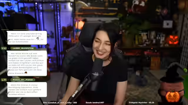 02:22:08Die Streamerin spricht über ihre Gewohnheit, Wasser mit Zusätzen wie Magnesium, Multivitamin und Calcium zu trinken, die sie hauptsächlich bei dm oder Aldi kauft. Sie listet verschiedene Vitamine und Säuren auf, die in den Produkten enthalten sind. Ein Zuschauer kommentiert scherzhaft, dass sie bei Pen & Paper-Sessions Snacks für fünf Personen alleine essen kann, was die Streamerin mit Humor nimmt. Es gibt auch eine kurze Diskussion über Empfehlungen, wobei die Streamerin betont, dass sie offen für Vorschläge ist. Die Atmosphäre bleibt leicht und humorvoll, während sie persönliche Gewohnheiten teilt.