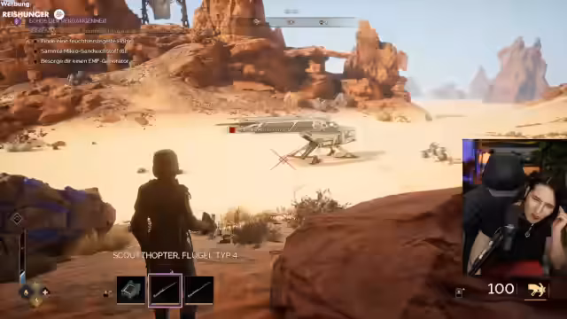 03:50:59Die Streamerin widmet sich der aktuellen Expedition in No Man's Sky und versucht, ein oder zwei weitere Punkte zu erledigen. Sie befindet sich in Phase 1 und muss für Phase 3 einen anormalen schwebenden Begleiter finden. Dabei sucht sie nach einem anomalischen Planeten, wie einem ätzenden, rostlosen, staubigen oder gamma-intensiven Planeten. Sie entdeckt einen 'Baby Doktor' oder 'Dissonanz'-Planeten und fragt sich, ob dies der richtige ist. Während der Suche trifft sie auf verschiedene Kreaturen, darunter ein Skelett, das sie als süß empfindet, aber feststellt, dass es nicht der gesuchte schwebende Begleiter ist. Sie fängt dennoch eine Kreatur ein, die stecken bleibt und nun zu ihr gehört, obwohl sie eigentlich einen anderen Begleiter für die Expedition benötigt. Es wird erklärt, dass man Begleiter haben und durch eine Liste wechseln kann, wobei das Freischalten weiterer Begleiter Punkte kosten kann.
