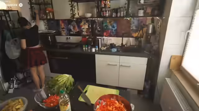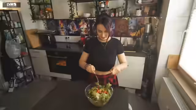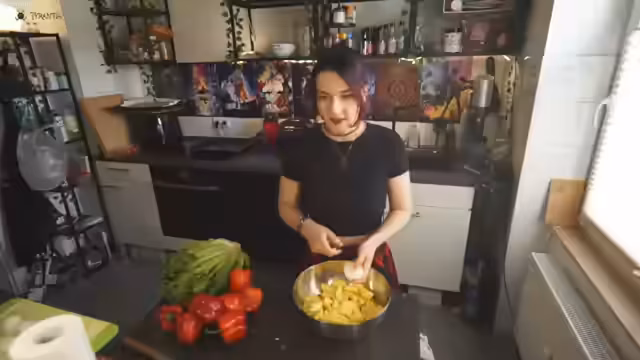 00:15:11Die Streamerin plant, spontan etwas zu kochen, da sie keine spezifischen Vorbereitungen getroffen hat. Sie erwähnt, dass sie Kartoffeln, Zwiebeln, Paprika und Salat zur Verfügung hat und beabsichtigt, etwas im Ofen zuzubereiten. Der Plan konkretisiert sich zu Kartoffelecken mit Zwiebeln und vielleicht etwas Paprika, die mit Öl und Gewürzen vermischt auf ein Backblech kommen und dann in den Ofen geschoben werden. Zusätzlich soll ein Salat zubereitet werden. Sie weist darauf hin, dass alle Zutaten normalerweise im Discord-Kanal zu finden sind, aber heute spontan gekocht wird. Es wird erwähnt, dass MTD (vermutlich eine andere Person) ebenfalls anwesend ist und das wilde, unvorbereitete Kochen verfolgt.