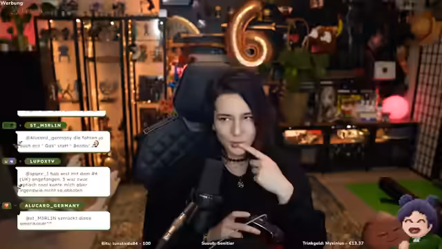 06:46:03In einer längeren Unterhaltung fragt der Streamer seine Community nach ihren Vorlieben für Autofarben. Diskutiert werden neutralere Farben wie Weiß, Schwarz und Silber sowie knalligere Töne wie Grün, Blau und Rot. Er teilt persönliche Erfahrungen mit seinen eigenen Autos. Der technische Bereich bleibt jedoch eine Herausforderung, da er Probleme mit der Spielsteuerung, Grafikfehlern und einem instabilen Controller-Empfang hat, was die Spielqualität beeinträchtigt.