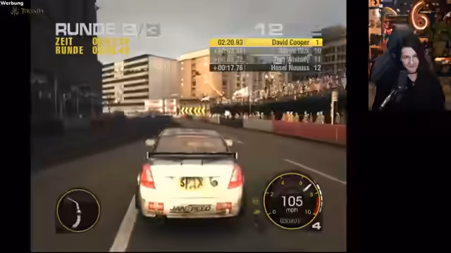 02:50:59Während des Spielens von Paradise City treten wiederholt technische Probleme auf. Der Streamer bemängelt, dass die Audioeinstellungen suboptimal sind und die Stimme der Erzählerin viel zu leise im Vergleich zu den Motorgeräuschen ist. Es wird versucht, die Lautstärke anzupassen, was jedoch nur teilweise erfolgreich ist. Beim Fahren durch die Stadt wird ständig auf andere Autos aufgepasst und es werden Abkürzungen gesucht. Nach einem Rennen wird die Lizenz aufgewertet, was zu Freude führt, auch wenn die Steuerung ohne Lenkrad als schwierig beschrieben wird.