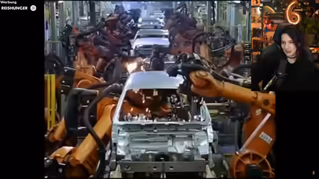 00:28:35Hazel startet mit der Community die Dokumentation 'Die Sendung mit der Maus' und beginnt mit Teil 1, der die Herstellung eines Autos zeigt. Gezeigt wird, wie aus einem Stahlblechwickel durch Stanzen und Pressen die einzelnen Karosserieteile entstehen. Der Prozess ist von Roboterarmen geprägt, die die Bleche transportieren und in riesigen Pressen formen. Dabei wird erklärt, dass für jeden Arbeitsschritt eine Vorratsschlaufe nötig ist, um das Material zu schonen. Das Stanzgut wird recyclet, um kleinere Teile herzustellen. Das finale Ergebnis nach diesem ersten Prozessschritt ist noch instabil und muss weiterverarbeitet werden.
