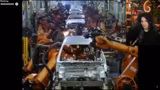 00:45:07Im vierten Teil der Dokumentation werden die Karosserieteile wie der vordere, mittlere und hintere Fußboden sowie Seitenteile zusammengesetzt. Die Teile werden auf einem Transportschiene von Robotern geschweißt. Es wird auch erklärt, dass an manchen Stellen Roboter die Namen der früheren menschlichen Arbeiter tragen, was Hazel als 'cute' empfindet. Die Dokumentation zeigt anschließend, wie zwei Seitenteile auf den fertigen Fußboden gesetzt und mit dem Dach kombiniert werden. Der Roboter 'Adit' kontrolliert die Teile mit einem Hammerschlag.