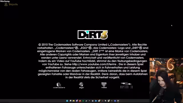 10:11:45Nachdem die technischen Probleme scheinbar gelöst sind, gelingt es dem Streamer endlich, in Dirt 3 ein Rennen zu starten. Er beschreibt die Strecke und die Herausforderung. Parallel dazu erwähnt er einen Film über Tourette, dessen Trailer er als sehr emotional und wichtig für die Sichtbarkeit der Krankheit empfindet, und wechselt öfter zwischen dem Spielen und der Filmempfehlung.