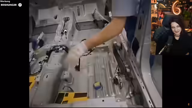 01:23:38Als nächstes wird der sogenannte Himmel, ein großes Dachhimmelteil, durch eine Öffnung im Fahrzeug eingesetzt und eingeklipst. Darauf folgt der Einbau der großen Fußbodenmatten, die zunächst noch nicht ausgeklappt werden. Der Prozess umfasst das Verlegen der Matten und das Durchziehen der bereits erwähnten Kabel. Danach ist das Fahrzeugboden von den Kabeln verdeckt und es geht weiter zum nächsten Montageschritt.