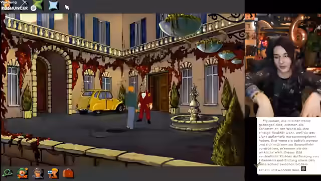 05:14:30Nach einem speichern beendet der Streamer das vorherige Spiel und startet ein neues Adventurespiel: "Baphomets Fluch". Er äußert seine Aufregung und seine Unsicherheit, da das Spiel nur auf Englisch verfügbar ist. Er beginnt in Paris und interagiert mit einem Inspektor, nachdem ein Attentat stattgefunden hat. Die ersten Schritte bestehen aus Gesprächen, Ermittlungen und dem Versuch, die Kameraperspektive einzustellen, was eine eigene Herausforderung darstellt.