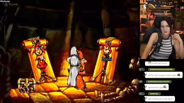 05:34:07Der Streamer wechselt das Spiel und beginnt mit 'Discord', einem Point & Click-Adventure aus dem Jahr 1995, das auf Terry Pratchetts Scheibenwelt basiert. Er gibt dem Chat Einblick in die Handlung mit dem Zauberer Rincewind und warnt vor der extrem hohen und oft nicht logischen Komplexität des Spiels, bei dem viele Items scheinbar keinen Nutzen haben und die Rätsel willkürlich erscheinen.
