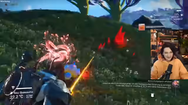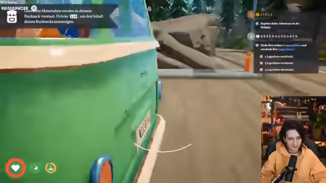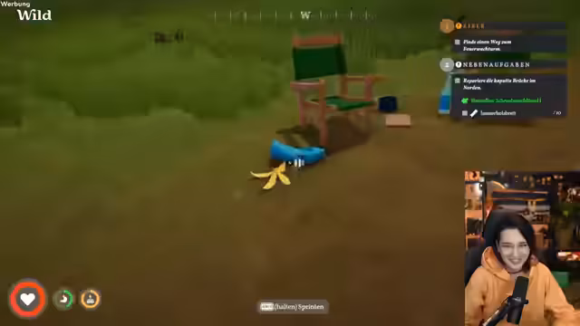 07:45:06Während des Aufbaus seines Camps entzündet der Streamer ein Lagerfeuer, was im Spiel die Gefahr eines Waldbrandes birgt. Er sammelt Kronkorken, um Blaupausen für neue Gegenstände zu erhalten, und erkundet die Umgebung. Die entspannte Atmosphäre des Spiels kontrastiert mit der spielerischen Herausforderung, Ressourcen zu verwalten und die Gefahren der Natur zu meiden.