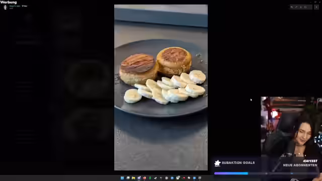 00:04:30Nach der Pause geht es mit dem eigentlichen Kochstream weiter. Der Streamer bereitet einen Teig für Pfannkuchen zu und benutzt dabei unter anderem selbst gemachten Puderzucker. Beim Backen der Pfannkuchen im speziellen Ring-System treten jedoch mehrere Probleme auf: Teig läuft aus den Formen, die Pfannkuchen brennen leicht an und der Streamer vergisst wichtige Schritte des Rezepts. Trotzdem gelingt es ihm, die fertigen, wenn auch nicht optisch perfekten, Pfannkuchen aufzutragen und zu präsentieren.