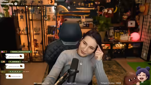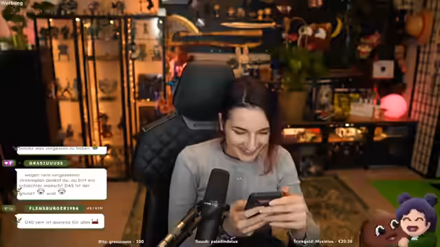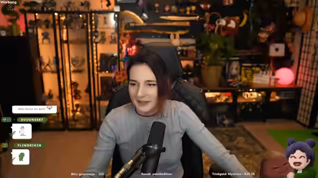 00:08:42Der Stream startet mit technischen Problemen, da das Bild hängt. Der Streamer muss kurz das Problem fixen. Nach der Lösung begrüßt er die Zuschauer im Chat und liest einige Namen vor, die ihm bei der Einrichtung auffallen. Die Lichtverhältnisse werden angepasst, um für die Augen angenehmer zu sein.