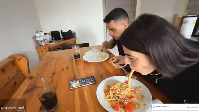 05:58:39Das Kochen nimmt Fahrt auf. Der Streamer stellt fertig geschnittene Zutaten zur Verfügung und lässt einen Timer laufen. Während des Servierens gibt es Diskussionen über die Portionsgrößen und die Vorlieben der Anwesenden. Die fertige Pasta wird beworben, als authentisch und wirklich gut, trotz ihres optisch nicht ansprechenden Aussehens. Witzige Kommentare und Abwechslung im Servierungsprozess sorgen für Unterhaltung.