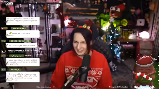 10:24:16Für den Dezember wird ein durchgehender Live-Stream-Zyklus angekündigt: Jeden Tag Live von 16:01 bis 16:31 Uhr. Am nächsten Tag steht die Fortsetzung von 'Sam & Max' an, während 'Destiny' für diesen Monat pausiert. Ein interaktives Segment mit dem Titel 'Was würdest du eher?' ist für den nächsten Stream geplant, basierend auf Community-Fragen aus Discord. Der Streamer bedankt sich bei den Zuschauern für die Beteiligung an den gemeinsamen Chats und bestätigt, dass das tägliche Format bis Silvester fortgesetzt wird.