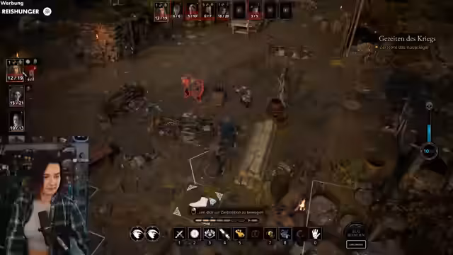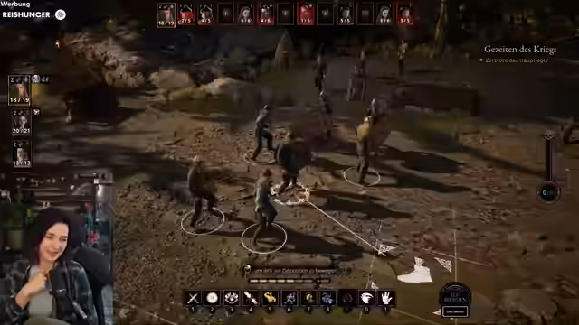 03:02:45Der Streamer gerät in heftige Kämpfe und verliert dabei zeitweise den Überblick über die Spielsituation. Charaktere wie Gunnar werden in den Kampf geschickt, auch wenn ihre Gesundheit kritisch ist, und stoßen auf starke Feinde. Ein Überlebensgrundsatz wird formuliert: 'Ohne Mampf kein Kampf', was die essenzielle Bedeutung von Nahrung für den Erfolg im unterstreicht. Trotzdem werden riskante Entscheidungen getroffen und die feindlichen Angriffe sind heftig und unvorhersehbar.