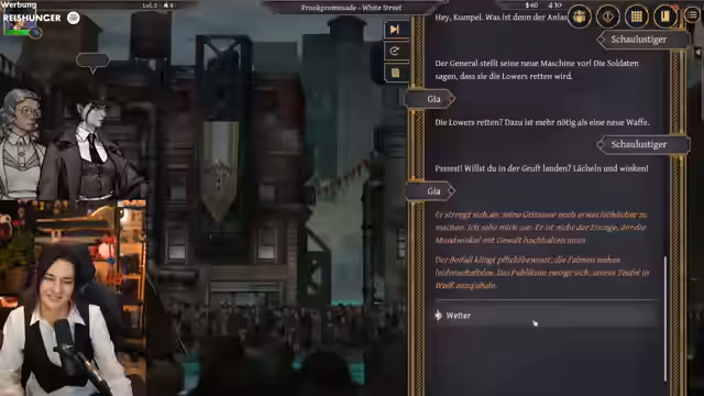 02:28:24Der Stream stellt sich einen neuen Titel vor: Aether & Iron. Das Spiel wird als rundenbasiertes Rollenspiel beschrieben, das in einer dystopischen Welt mit alten Autos und Schmugglern spielt. Ein wichtiges Merkmal ist das Fehlen von traditionellem Speichern, stattdessen kann nur ein einziger Spielstand verwendet werden, was dem Spiel einen zusätzlichen Herausforderungscharter verleiht. Die Präsentation hebt das detaillierte Talent- und Fertigkeitssystem sowie die Dialogoptionen hervor, die durch Talentprüfungen mit Würfeln beeinflusst werden.
