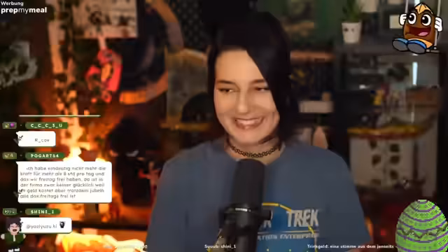 07:17:04Die Stimmung lockert sich wieder auf, als der Streamer zu alltäglichen, aber unterhaltsamen Themen übergeht. Dazu gehören die Gefahren von verschimmeltem Essen und die Erinnerung an vergessene Pausenbrote oder ungewaschene Wäsche aus Schul- und Studienzeiten. Diese persönlichen Anekdoten und die darauffolgenden Diskussionen über Lebensmittelhygiene schaffen eine sehr lockere und persönliche Atmosphäre im Stream.