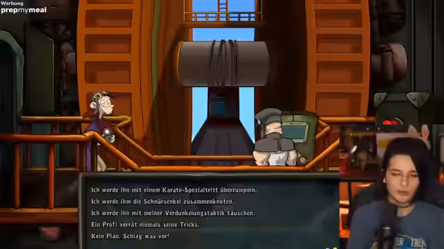 05:14:29Der Stream konzentriert sich auf die Lösung eines komplexen Rätsels im Spiel Deponia. Es geht darum, mit drei gesteuerten Delfinen ein Tauchboot auf einem Gitterbrett zu fangen. Die Streamerin muss die Delfine strategisch positionieren und Bewegungen planen, da das Tauchboot ausweichen kann und nur eine bestimmte Schrittweite pro Runde zurücklegen darf. Nach mehreren Versuchen und einer scheinbaren Fehlentscheidung, die zum Verlust eines Delfins führt, gelingt es ihr, das Rätsel doch noch zu lösen, was im Chat begeisterte Reaktionen hervorruft.