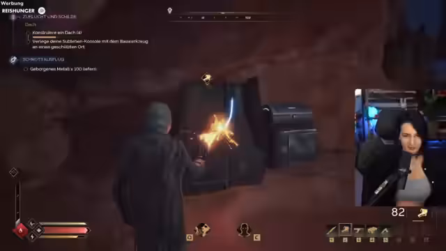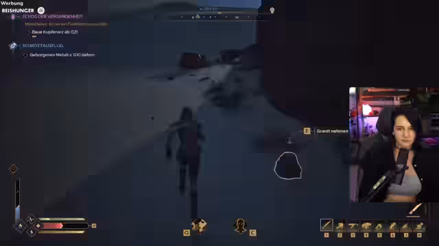 03:01:17Innerhalb des Spiels wird die Kernmechanik des survival- und craftingsystems vorgestellt. Der Streamer sammelt Metallmesser und stellt Pfeile her, um seine Ausrüstung zu verbessern. Gleichzeitig wird die Geschichte durch einen Erzähler vorangetrieben, der den Spieler in die Welt von Dune eintauchen lässt und ihm mysteriöse Aufgaben stellt, wie das Finden der 'Fremen'. Die durchgehenden technischen Ruckler im Spiel werden dabei als frustrierend empfunden.