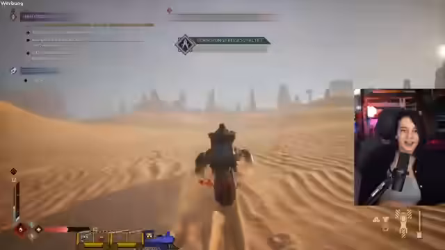 05:36:22Es kommt zu einer Reihe von tödlichen Fehlern im Spiel, die den Streamer verunsichern, darunter das Zerstören seines Fahrzeugs und versehentliches Sterben. Nach einem Neustart des PCs bemerkt er, dass sein Spielstand verloren geht und er von vorne beginnen muss. Trotz dieses Rückschlags erkundet er die Ödnis weiter, stößt auf eine riesige Kreatur und versucht vergeblich, sie zu erlegen. Während der Erkundung erwähnt er den besonderen Status von Dune: Awakening als Vollpreistitel für rund 50 Euro und seine anfänglichen Schwierigkeiten mit der Orientierung im Spiel.