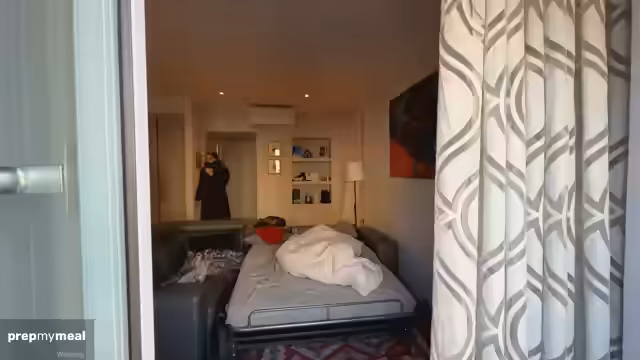 00:02:49Der Stream startet mit chaotischen Szenen im Hotelzimmer, in dem die Streamer offenbar versuchen, Bananen durch eine Luke zu schieben. Es kommt zu Missverständnissen und technischen Verwirrungen. Der Streamer berichtet von einem Burger, den er in eine bodenlose Öffnung schoben, und zeigt sich über die Reaktion des Chats überrascht. Er erwähnt die Ankunft in Trieste, den Kauf von Orangen für Saft und begrüßt die Zuschauer, während er auf den Start des Tagesprogramms wartet.