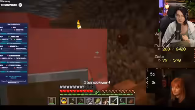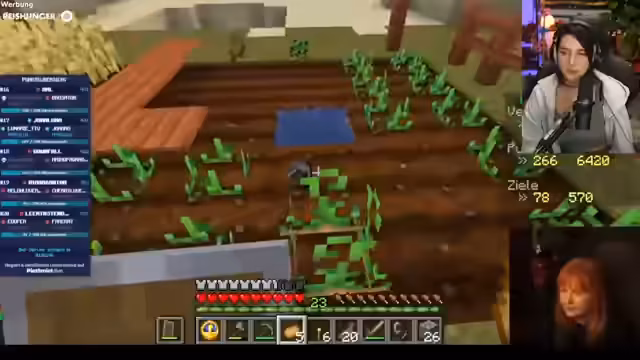 05:30:07Das Stream-Team startet in die Die Liga der Sterblichen (DLDS) und konzentriert sich auf Minecraft. Die ersten Herausforderungen sind technisch bedingt, durch den Chatdelay entstehen Verwirrungen. Man versucht, einen Obsidian-Block für den Zaubertisch zu beschaffen, indem man Lava und kombiniert. Dabei kommt es zu Missverständnissen, ob das Wasser auf die Lava oder auf den danebenliegenden Stein gegeben werden muss. Die Kommunikation im Chat ist wichtig, um Fehler zu vermeiden und den Prozess korrekt durchzuführen.