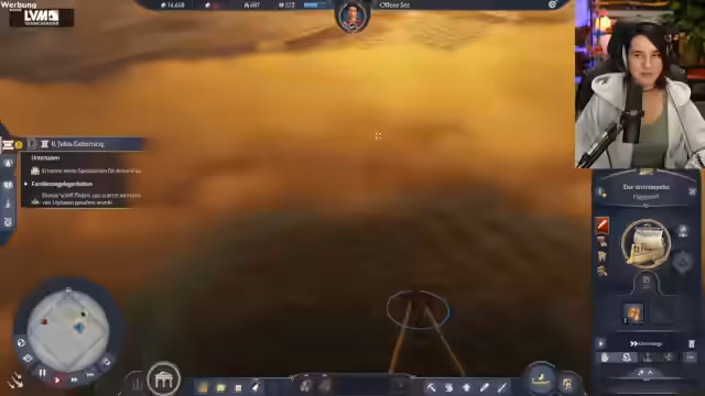 06:36:18In Anno 1800 stehen mehrere Quests an, darunter die Vorbereitung eines Festes für die Göttin Ceres. Das Team muss Ressourcen wie Ziegel beschaffen und liefern. Gleichzeitig muss man die Bedürfnisse der Bürger, wie Versorgung und Unterhaltung, erfüllen. Man baut einen Marktplatz und ein Hafengebäude, um die Zufriedenheit zu erhöhen und das Stadtleben zum Laufen zu bringen.