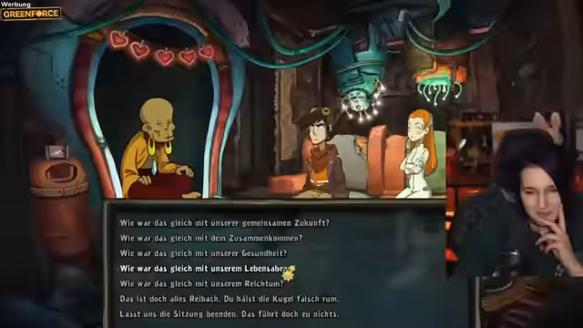 04:57:46Ein Wahrsager wird aufgesucht, um nach der gemeinsamen Zukunft, dem Zusammenkommen mit Donna Goal und der Gesundheit zu fragen. Die Kugel des Wahrsagers zeigt Zerrissenheit und die Notwendigkeit, mit sich selbst ins Reine zu kommen, bevor man zusammenfindet. Bezüglich der Gesundheit sieht der Wahrsager Furchtbares, rät zur Distanzierung, was jedoch abgelehnt wird. Auf die Frage nach dem Lebensabend verdunkelt sich die Kugel plötzlich. Es folgen Fragen nach den Lottozahlen und Reichtum, wobei die Kugel Reichtum an Erfahrung voraussagt, vorausgesetzt man überlebt alles. Der Wahrsager wird als unglaubwürdig dargestellt, da er die Kugel angeblich falsch hält. Es wird versucht, Goal zu wechseln, um andere Antworten zu erhalten. Der Wahrsager wiederholt seine Aussagen über einen langen, beschwerlichen Weg und die Notwendigkeit, mit sich selbst ins Reine zu kommen. Die Besuche beim Seher werden wiederholt, wobei versucht wird, durch Wechseln der Goal-Persönlichkeit andere Antworten zu erhalten. Die Kugel zeigt weiterhin Dunkelheit und schwache Batterien an, was als Zeichen für eine strahlende Zukunft auf Elysium interpretiert wird.