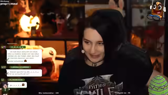 Die IT-affine haselnuuuss sprach über Aufräumarbeiten und die bevorstehende Partnerparty. PrepMyMeal wird als Lösung gegen das Verhungern vorgestellt und die Idee eines Kochstreams diskutiert. Es folgen Einblicke in Portionsgrößen und die Vorstellung verschiedener Gerichte. Am Ende Dank für Komplimente und die Ankündigung, weiterhin an IT-Problemen zu arbeiten.