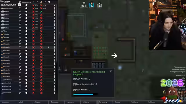 05:15:01Nachdem die Gruppe wieder zusammengefunden hat, konzentrieren sie sich auf neue Missionen wie das Sammeln von Pilzen und das Verlegen von Rohren. Diese Aufgaben erfordern eine gute Koordination und verursachen weitere Verwirrung. Anschließend wechselt der Streamer zu RimWorld, einem Survival-Spiel. Dort gerät eine Kolonie in eine Krise, da die Kolonisten verletzt sind, keine Nahrung mehr haben und sich gegenseitig angreifen. Die Prioritätensteuerung und das Management der Ressourcen werden zu einem zentralen Problem.